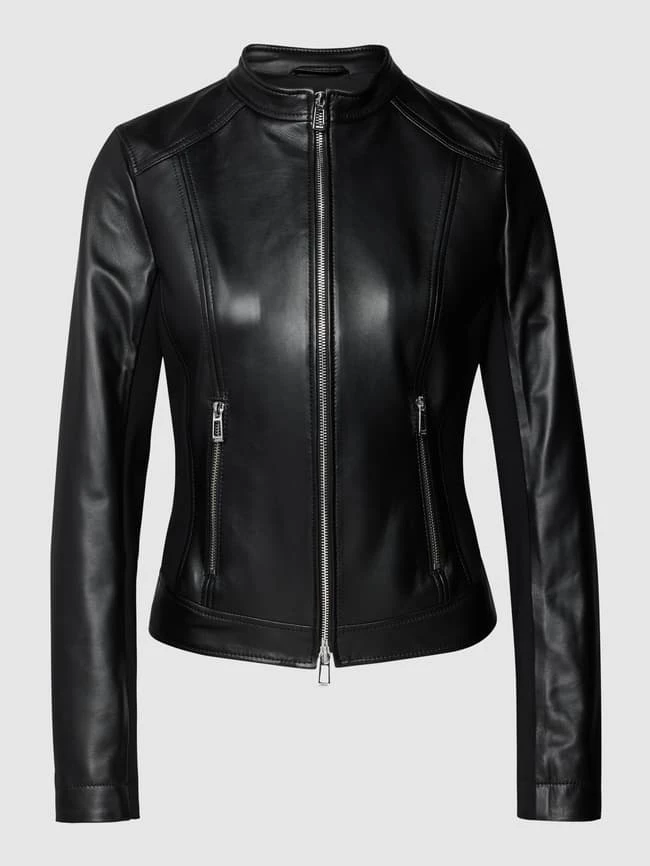 HUGO Lederjacke Mit Seitlichen Eingrifftaschen Modell ‘Lanore’ – Schwarz