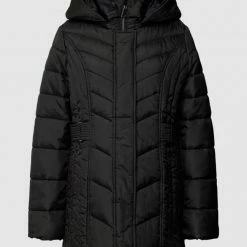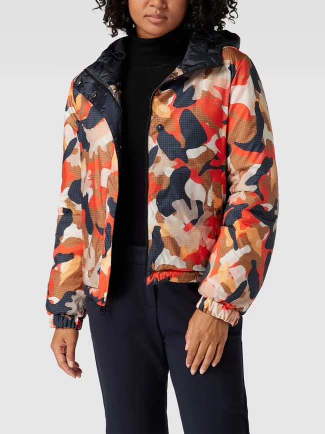 Die Steppjacke von Marc Cain ist aus strapazierfähigem Material gefertigt und gerade geschnitten. Sie kommt mit Allover-Muster und Kapuze mit Tunnelzug.